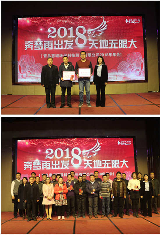 2月9日,青島惠城環??萍脊煞萦邢薰?018年度主題為“奔夢再出發 天地無限大”的總結表彰暨新春聯歡會在青島康大豪生大酒店隆重召開。