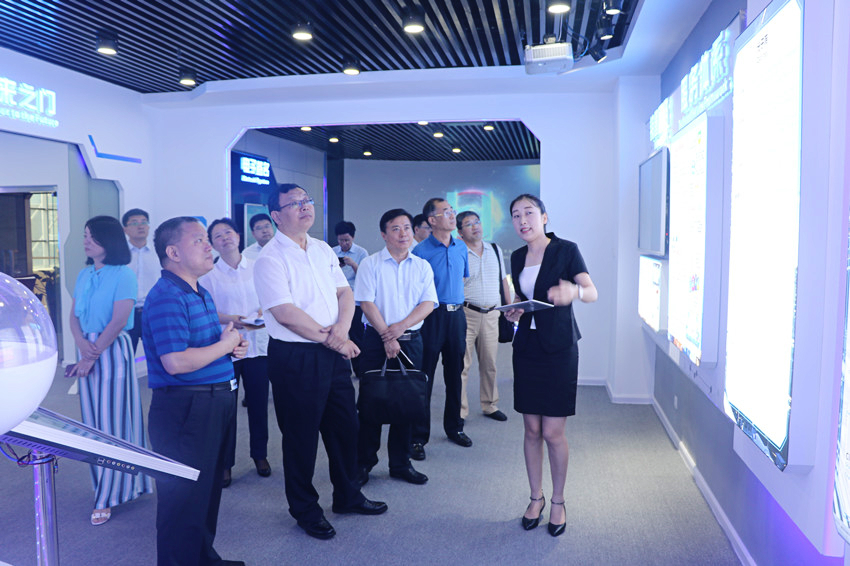 7月4日,青島西海岸新區管委主任、區長李奉利帶領管委辦、工信局、科技局、金融辦等部門主要領導蒞臨我司參觀調研?。