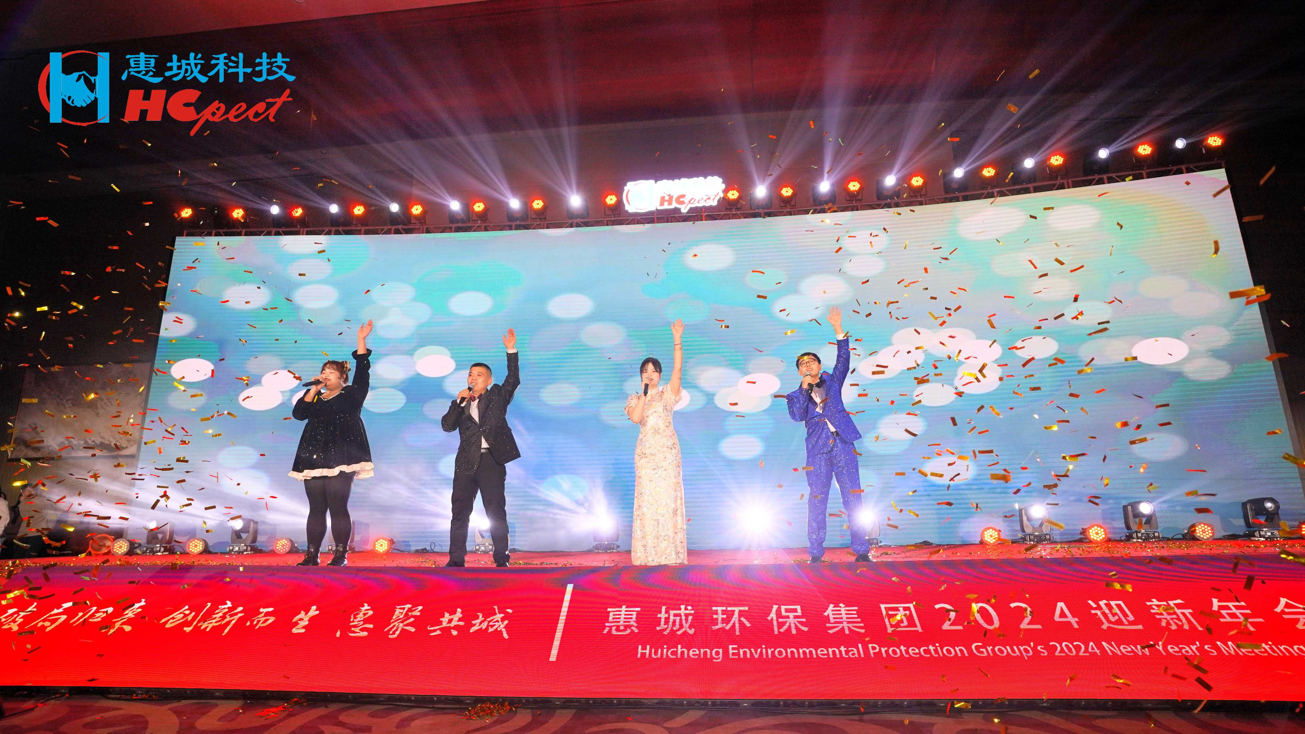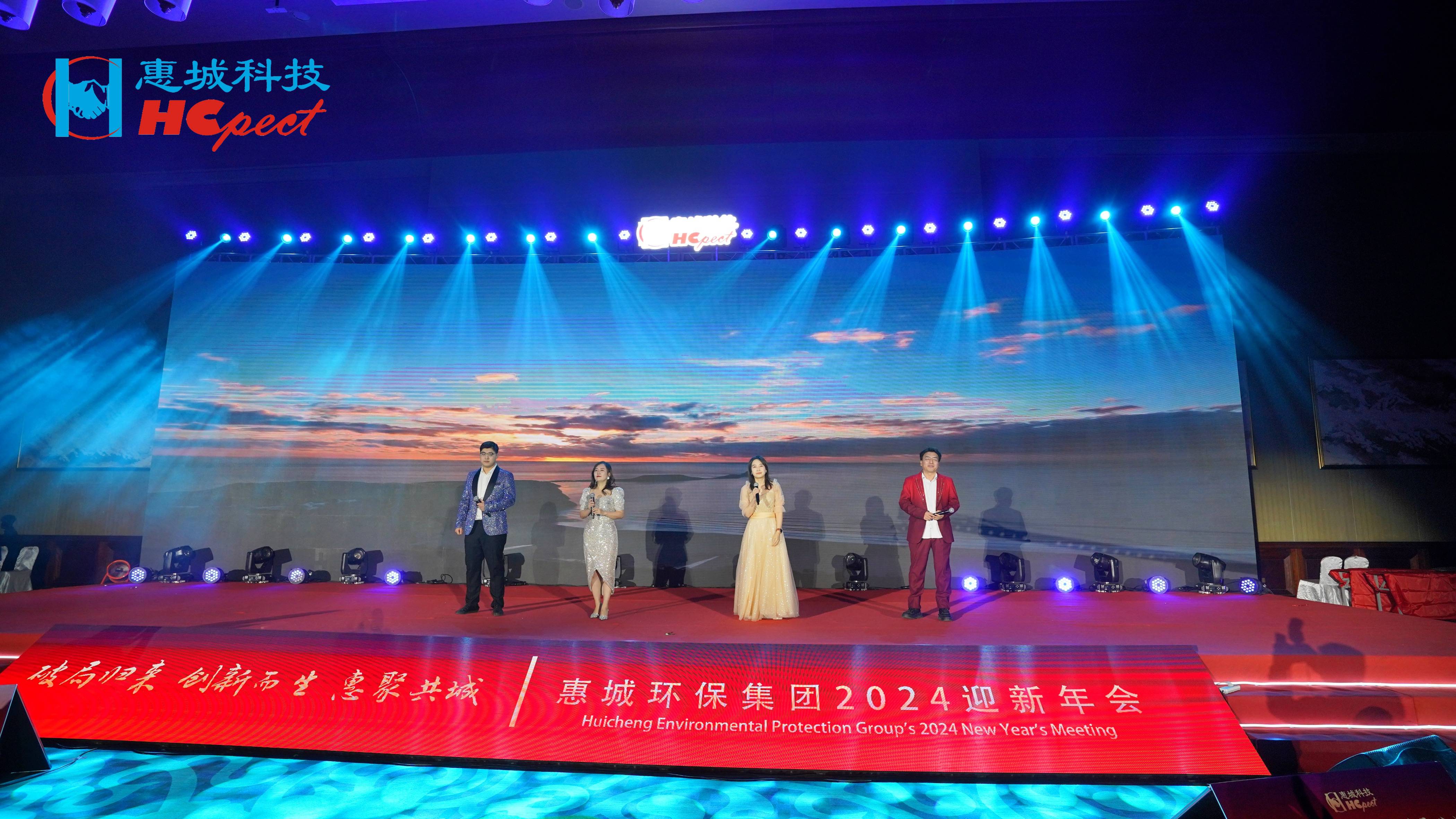 202424日,“破局歸來 創新而生 惠聚共城”惠城環保集團2023年總結表彰大會暨2024年迎新年會在青島金沙灘希爾頓酒店主會場隆重召開,會議采用線上線下結合的方式,集團外圍各子公司、合作伙伴及社會各界共同通過視頻直播同步觀看晚會的盛況。會議中,惠城環保集團創始人張新功、高管團隊、特邀嘉賓以及各子公司員工代表共500余人歡聚一堂,共憶奮斗往昔、共學優秀榜樣、共話惠城未來、共賞精彩表演、共品美味佳肴,度過了一場難忘而美好的盛會。