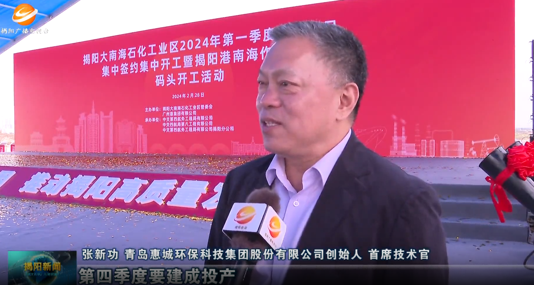 為進(jìn)一步加快大南海石化產(chǎn)業(yè)的延鏈、補(bǔ)鏈、強(qiáng)鏈,為大南海高質(zhì)量發(fā)展增添蓬勃新動(dòng)力,助力揭陽(yáng)市發(fā)展新質(zhì)生產(chǎn)力,2月28日,揭陽(yáng)大南海石化工業(yè)區(qū)舉行2024年第一季度重點(diǎn)項(xiàng)目集中簽約集中開工活動(dòng),揭陽(yáng)市領(lǐng)導(dǎo)王勝、支光南、葛承書、蔡淡群、黃熹、李晉龍等出席開工儀式,青島惠城環(huán)保科技集團(tuán)股份有限公司創(chuàng)始人、首席技術(shù)官?gòu)埿鹿κ苎麉⒓踊顒?dòng)。